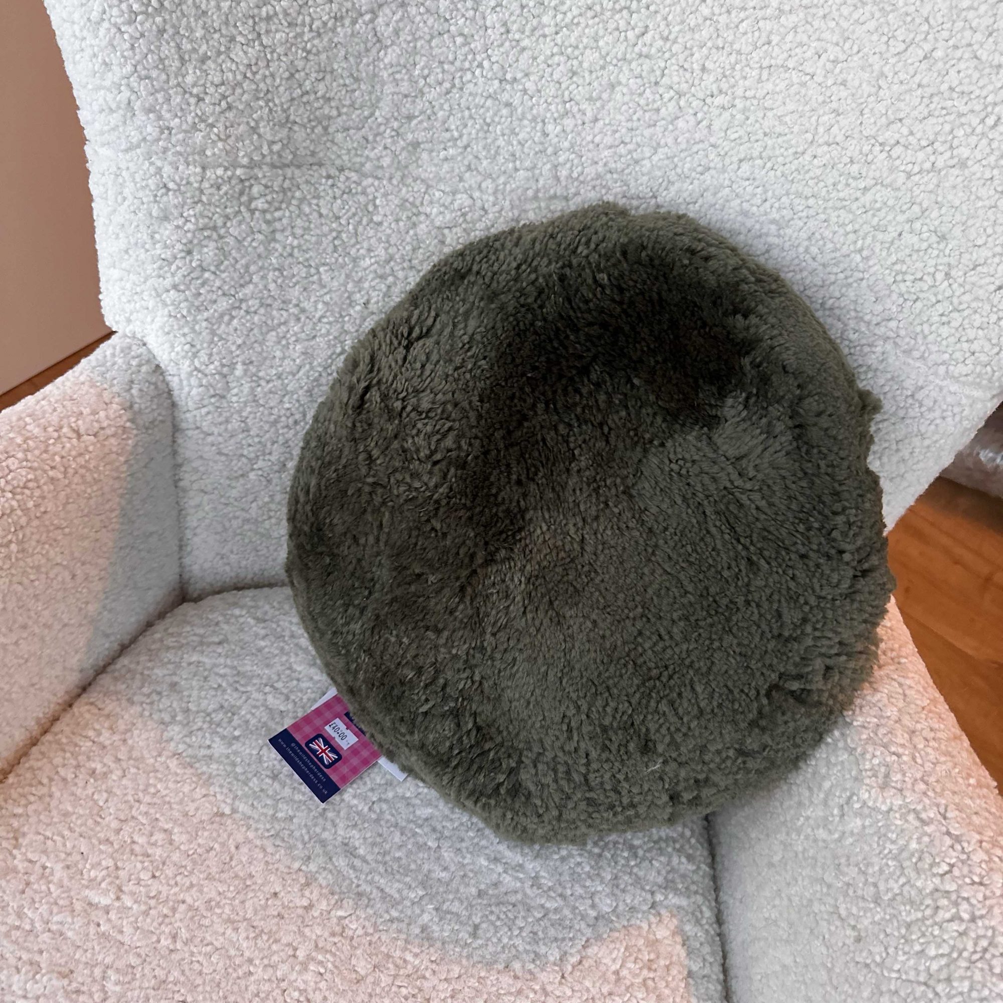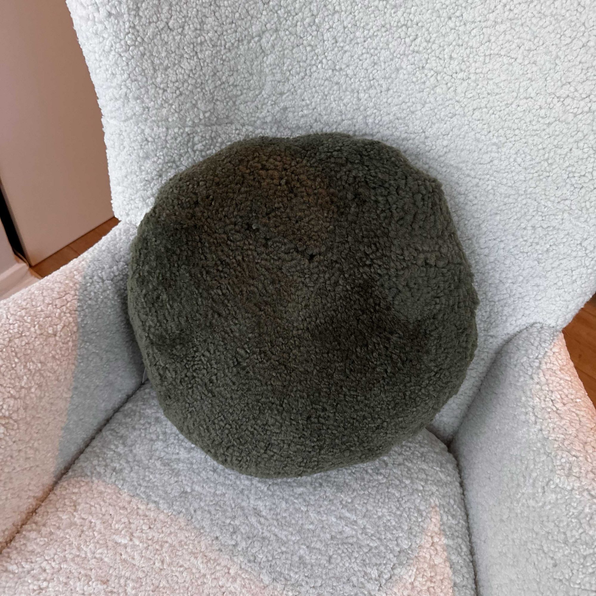 Boucle Sheepskin Cushion – Green Round