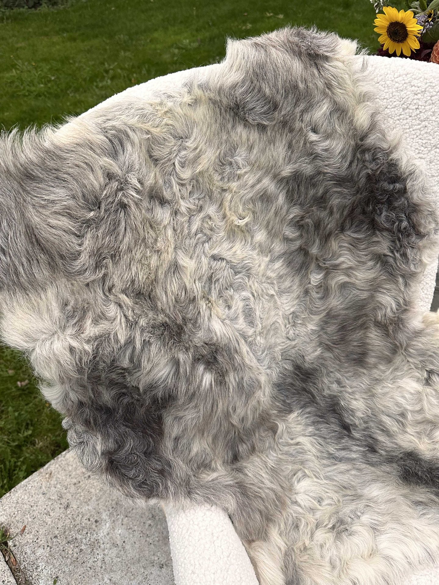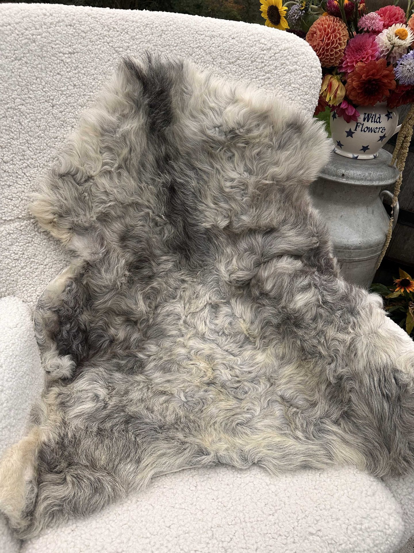 This sheepskin is a Herdwick cross breed featuring beautiful shades of greys, browns and creams. It is super gorgeous with a tight, short curl and has a wire texture to it which is of course, traditional of the herdy breed.