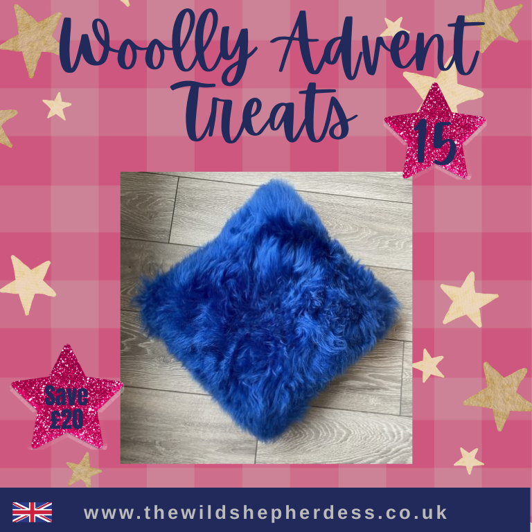 British Sheepskin Cushion, Double Sided, Cornflower Blue