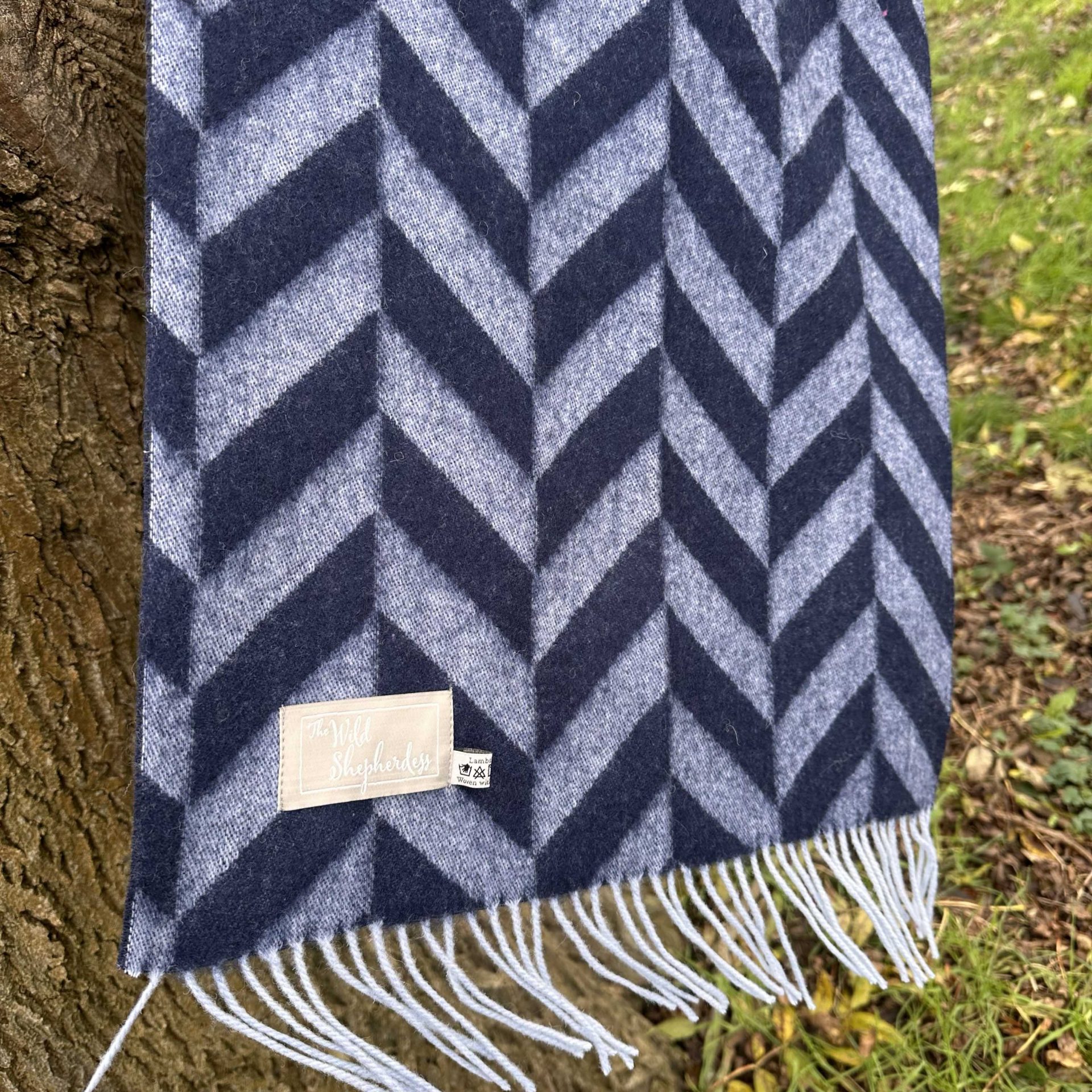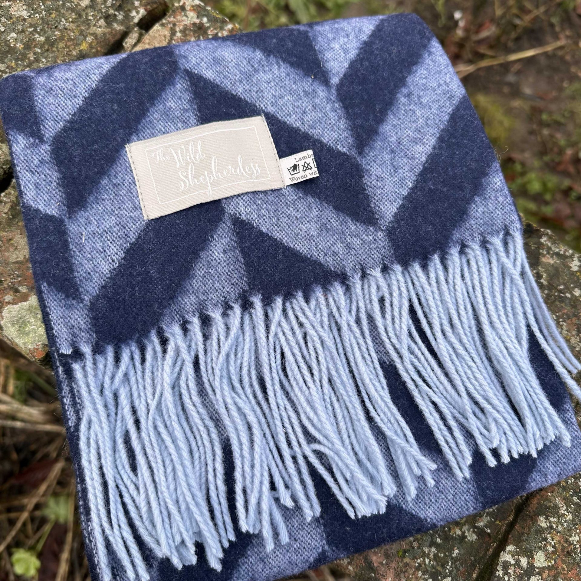 Chunky Lambswool Herringbone Scarf – Blue