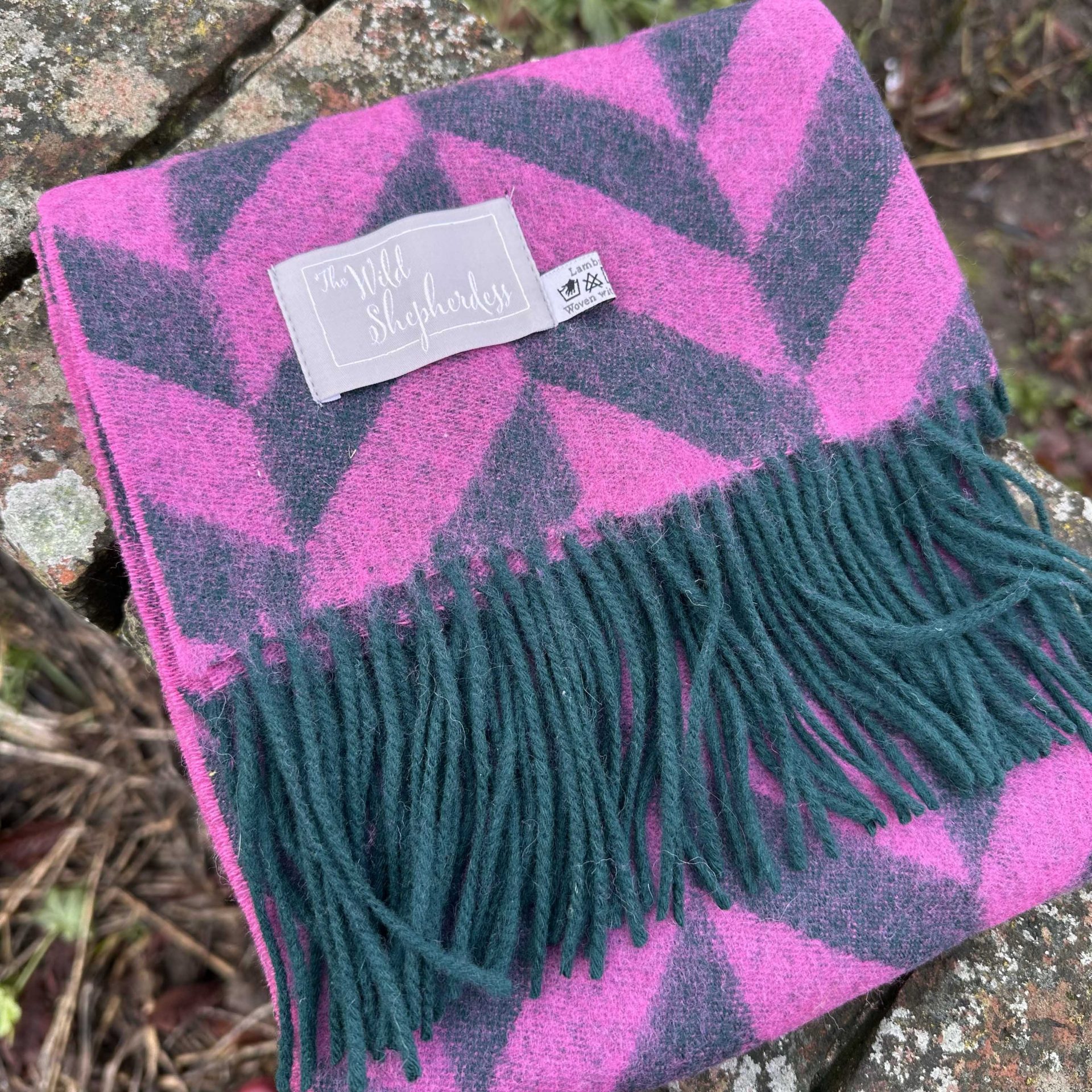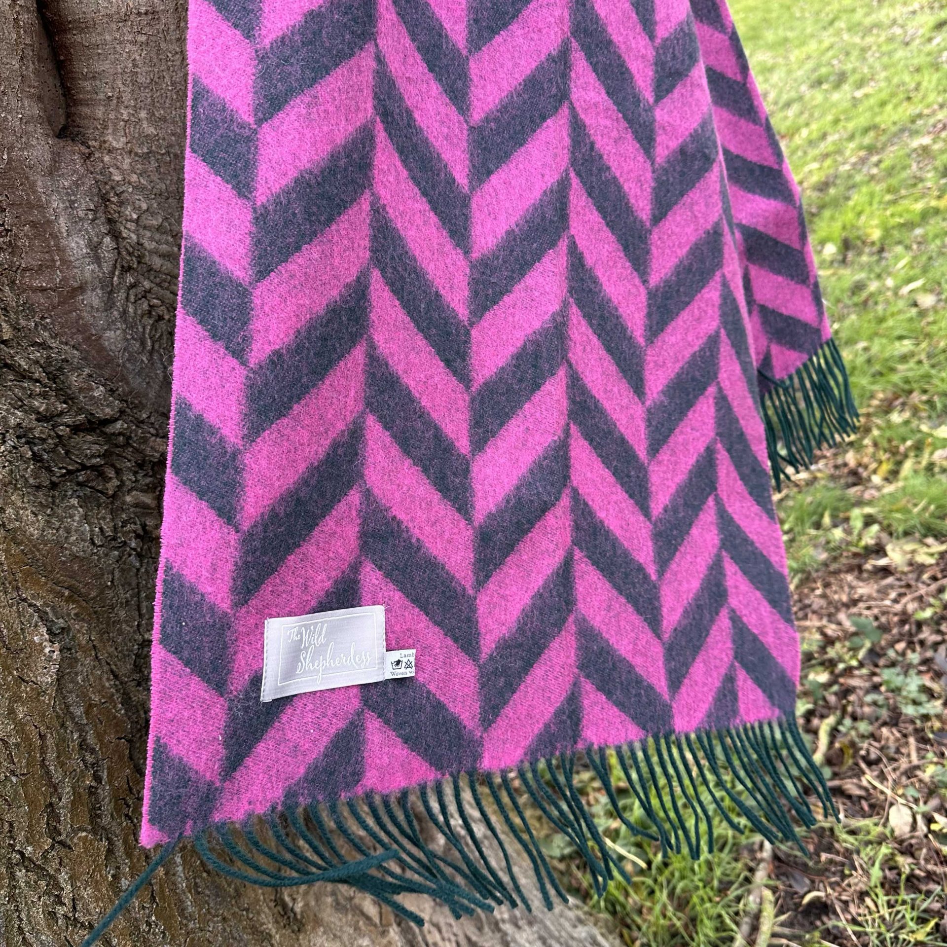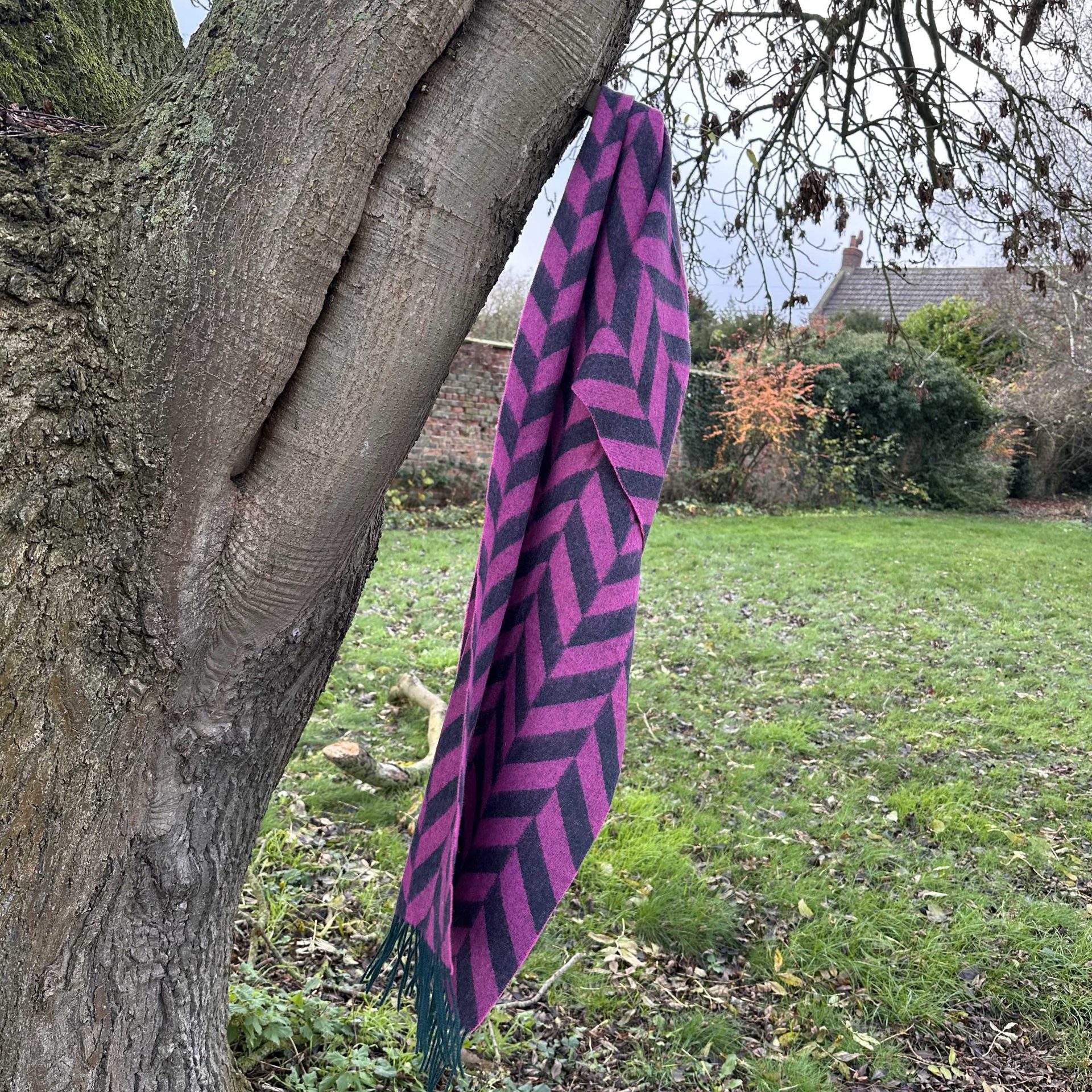 Chunky Lambswool Herringbone Scarf – Pink & Emerald