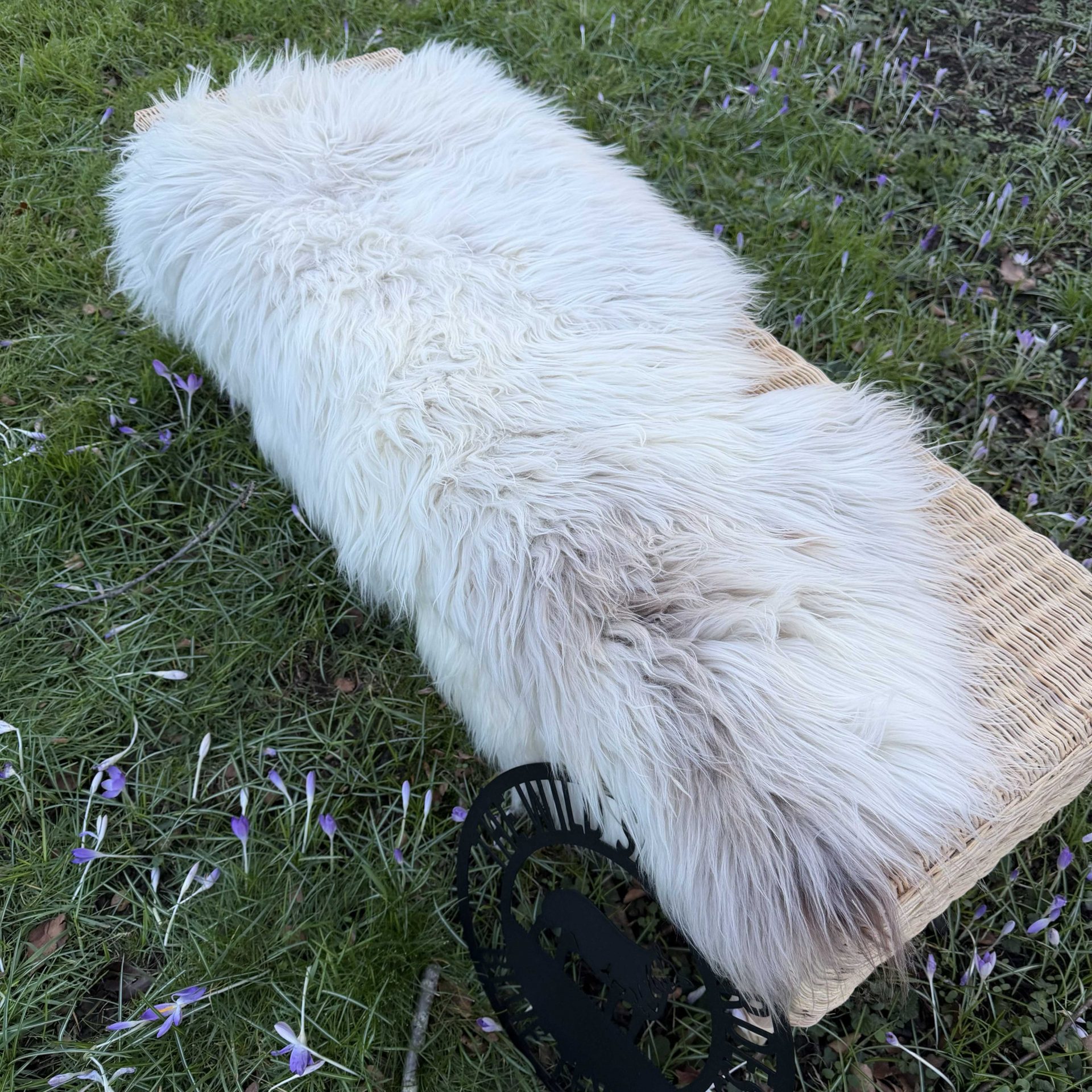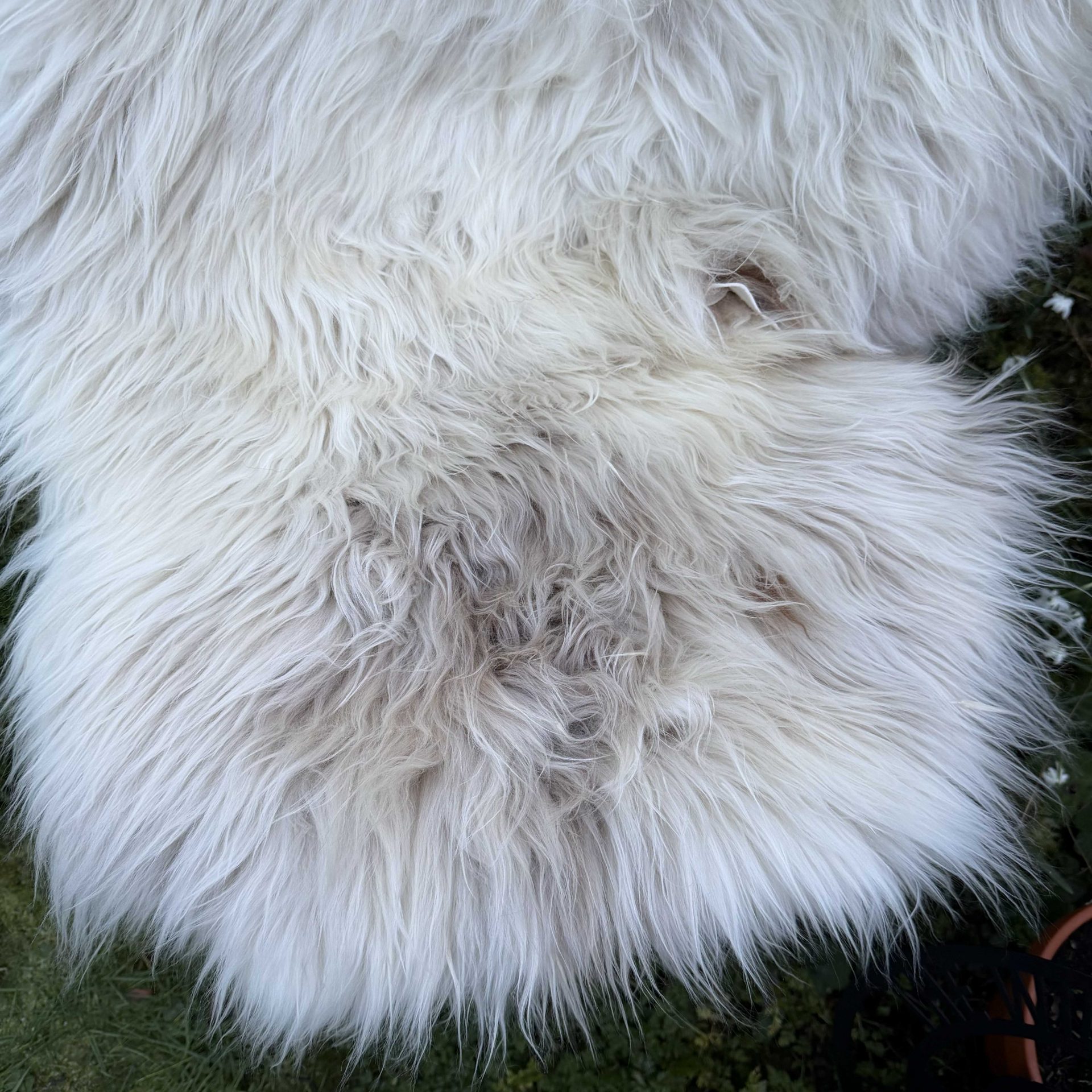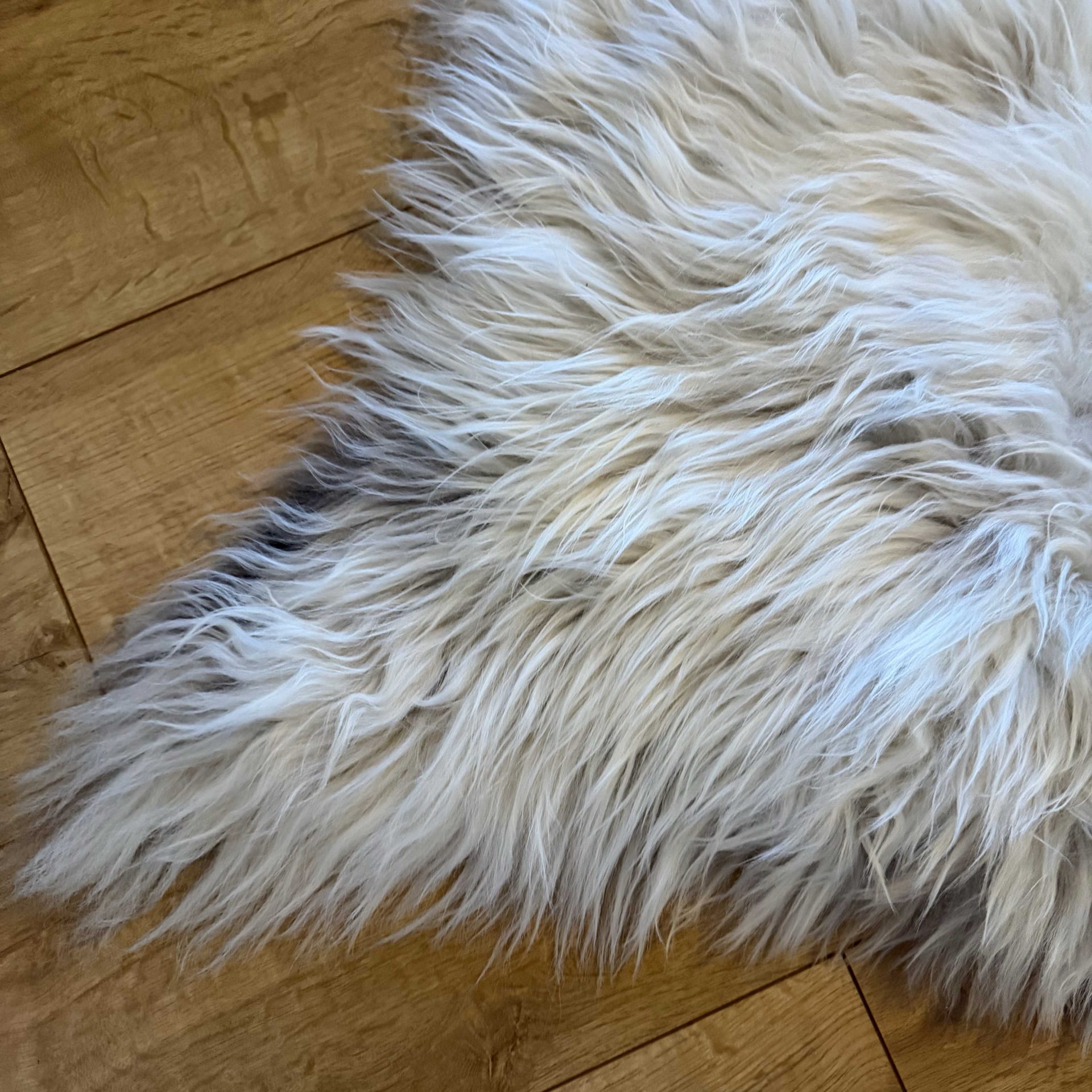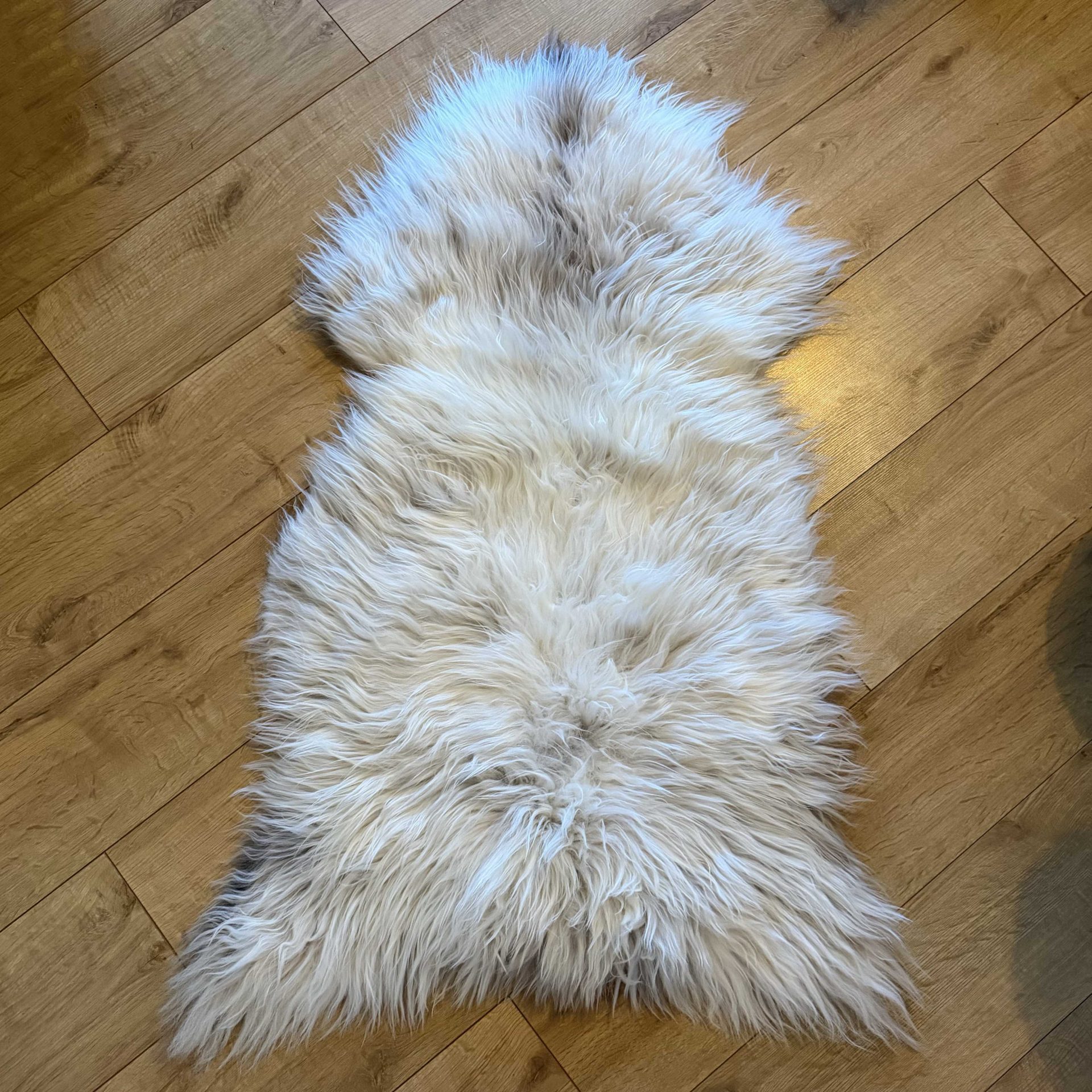 Stunning sheepskin with luscious long locks, featuring beautiful creamy tones of beige on a cool icy base.
