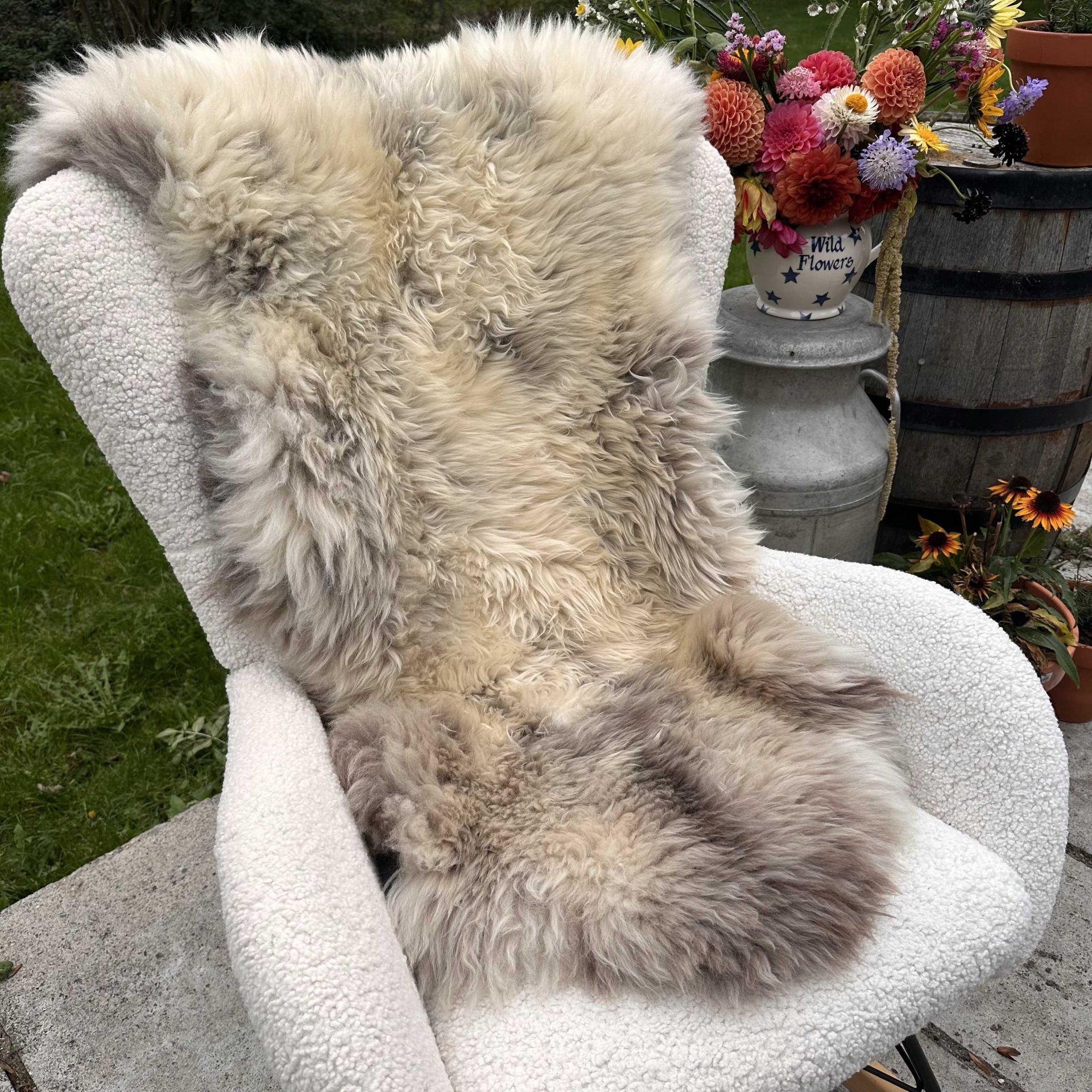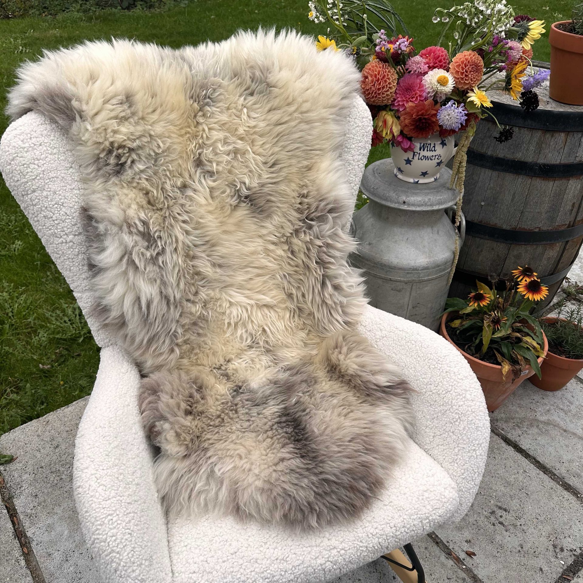 As sheepskin is a natural product, each one of our sheepskins are unique. Sheepskins are naturally dirt repelling because of the lanolin in the wool, to keep your sheepskin looking its best, most of the time all it needs is a good brush with one of our slicker brushes (found in Sheepskin Products – Accessories) a good shake outside and simply hang out on the washing line on a fine day. For a refresh, spritz it with our Sheepskin, Wool & Cashmere Spray we have available (found in Lanolin/Sheep Milk Products – Little Beau Sheep Collaboration).