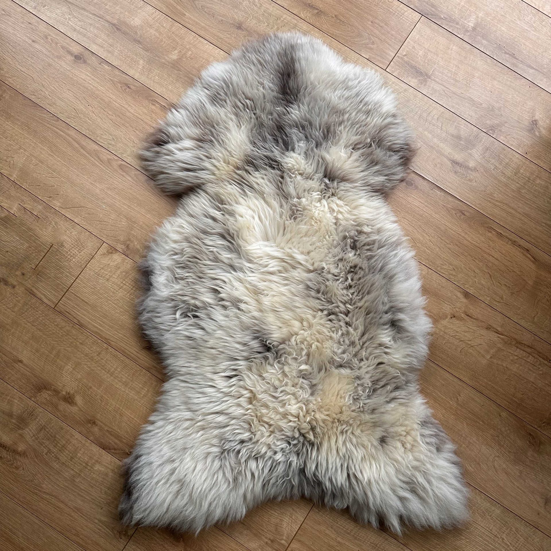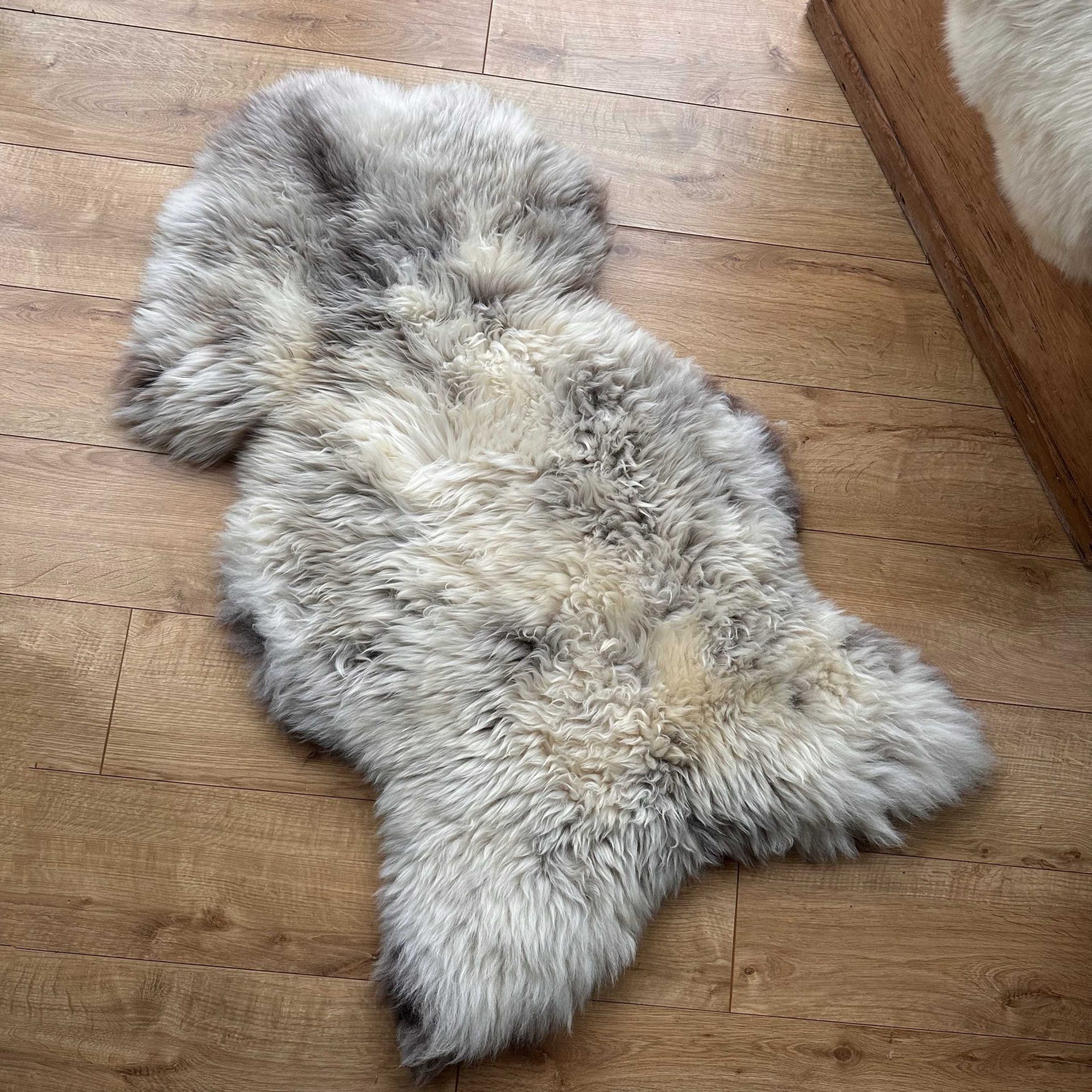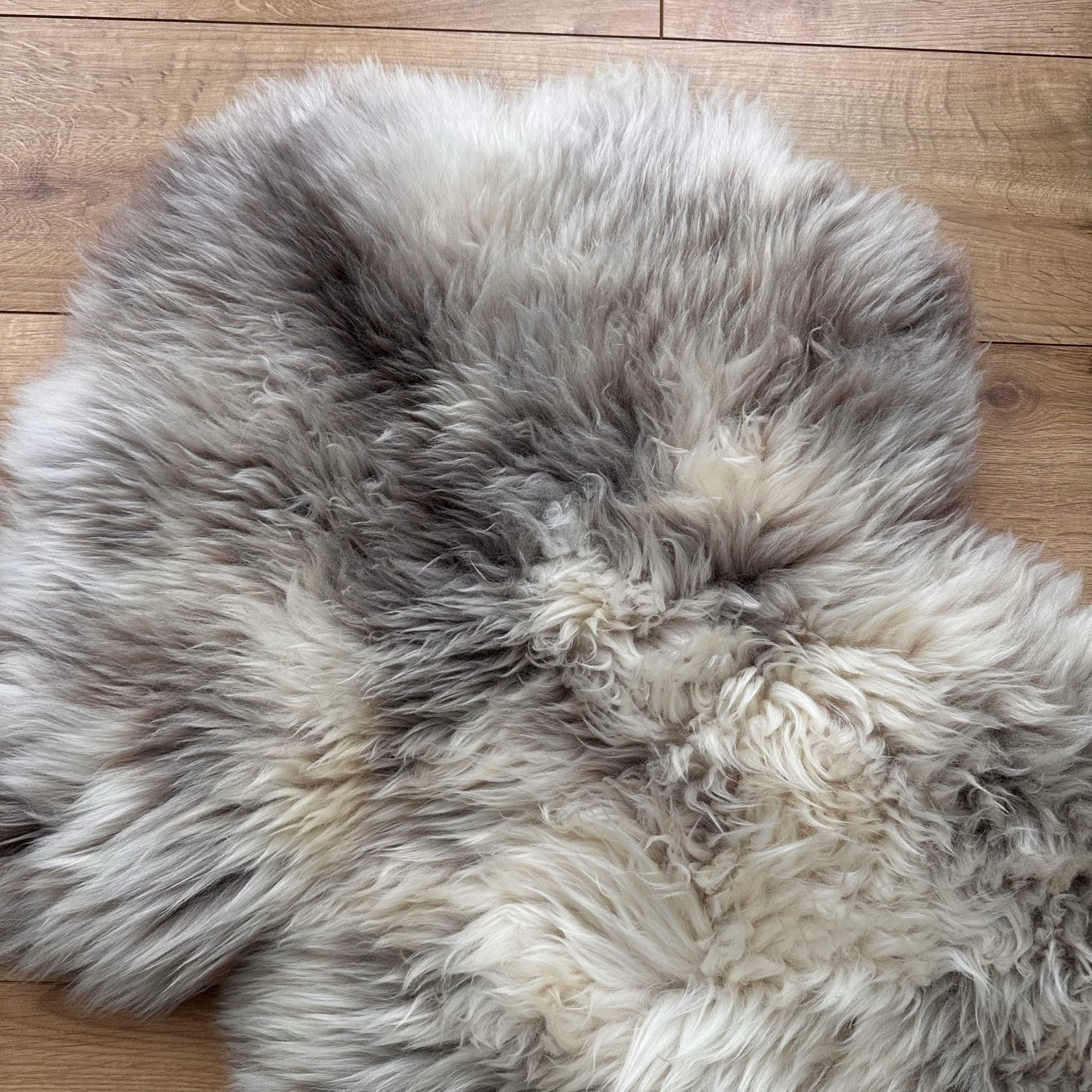 What an amazing sheepskin! It is so unique with its stunning markings featuring grey and brown flecks throughout. It is super silky and luxuriously large in size.