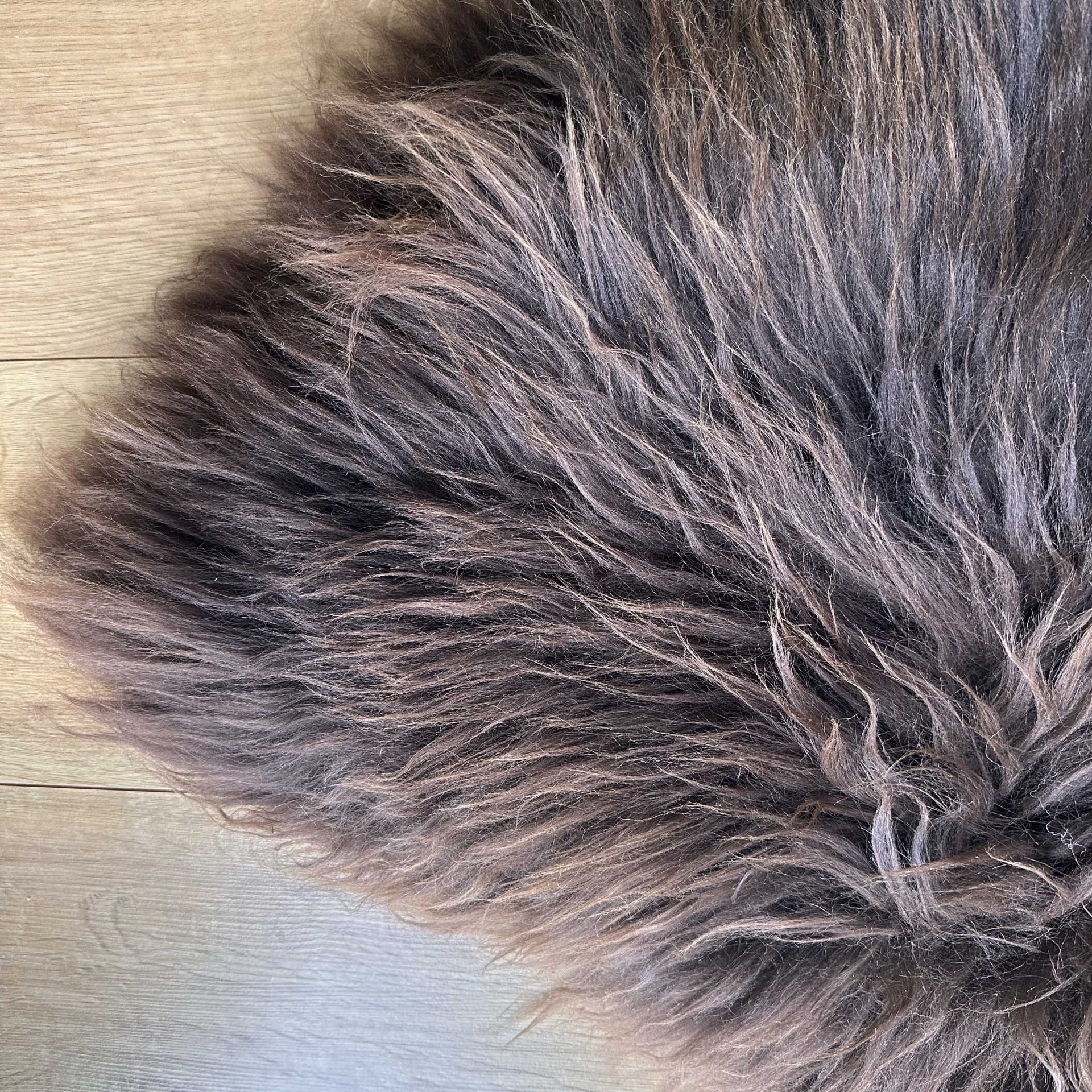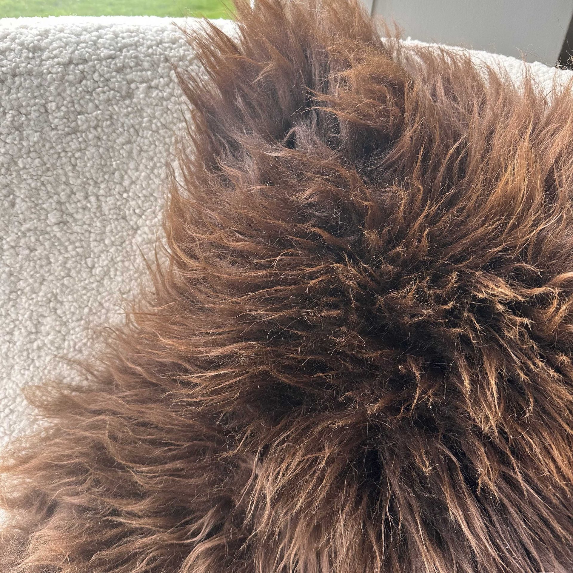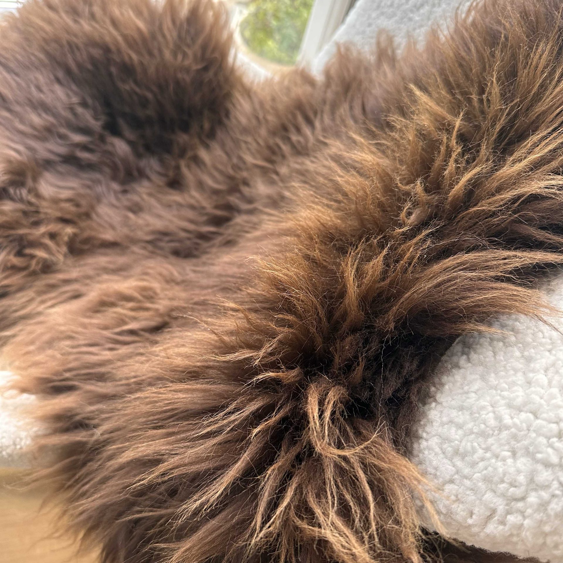 Oh what a stunner! This sheepskin is rich on brown tones and have the most beautiful shaggy, long and soft fleece.