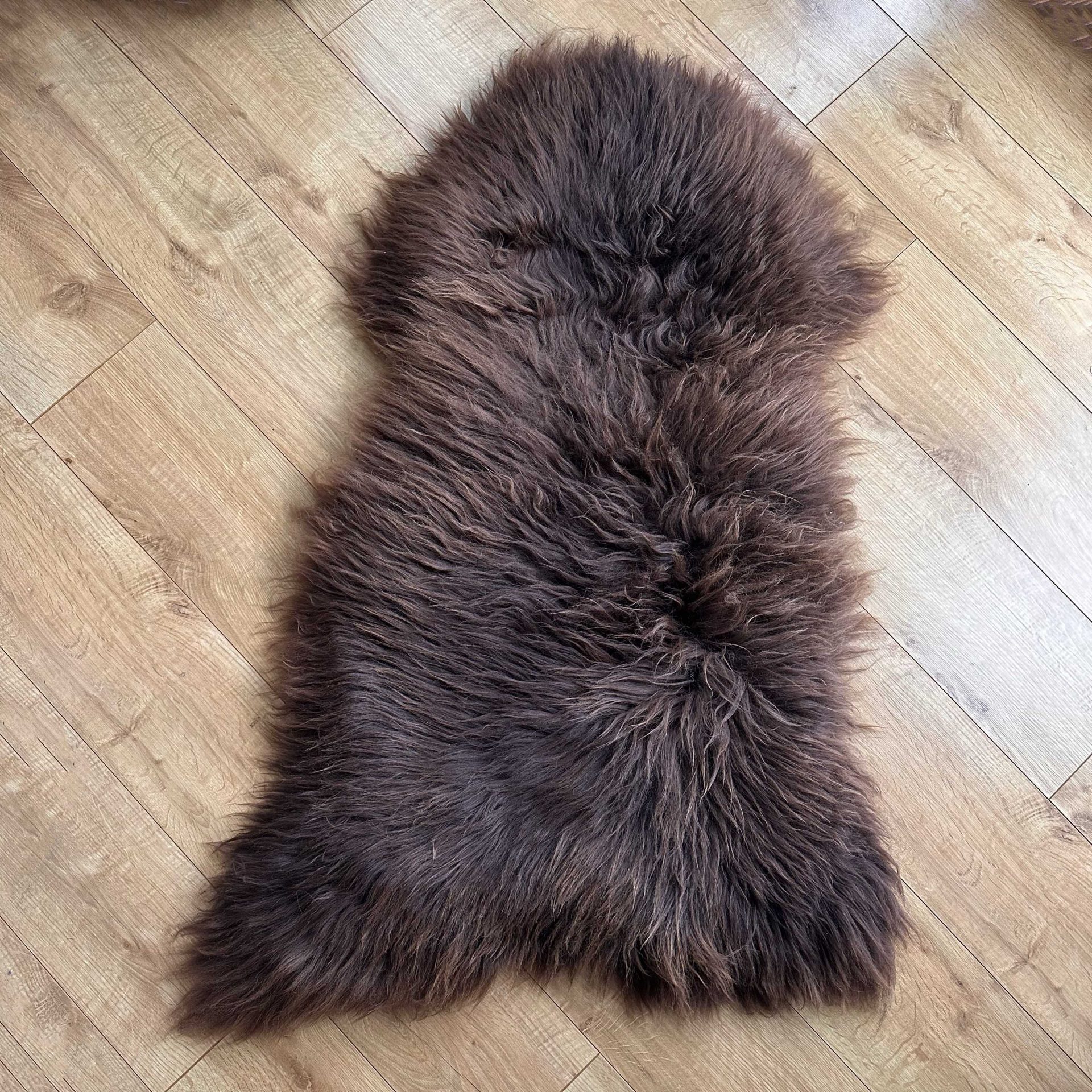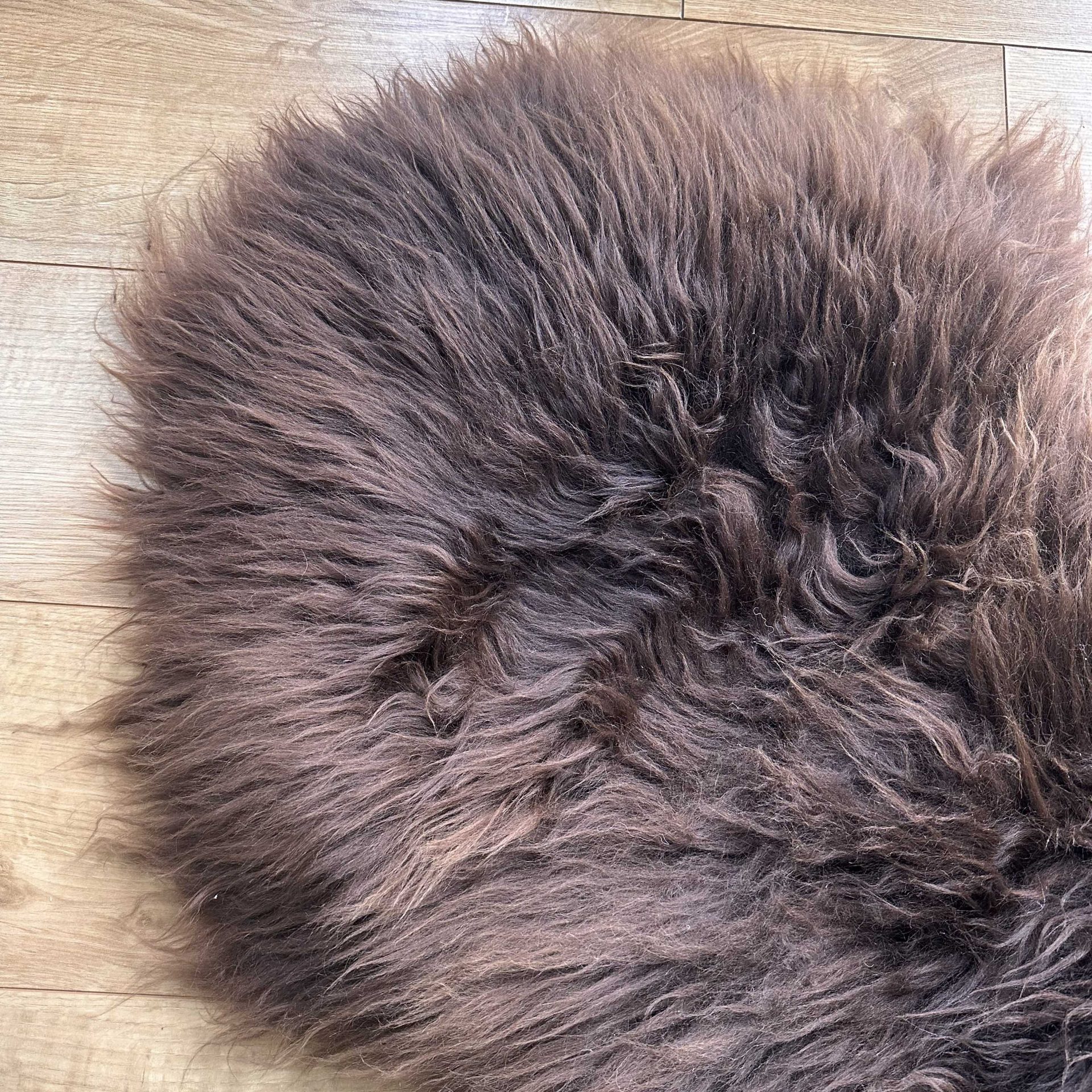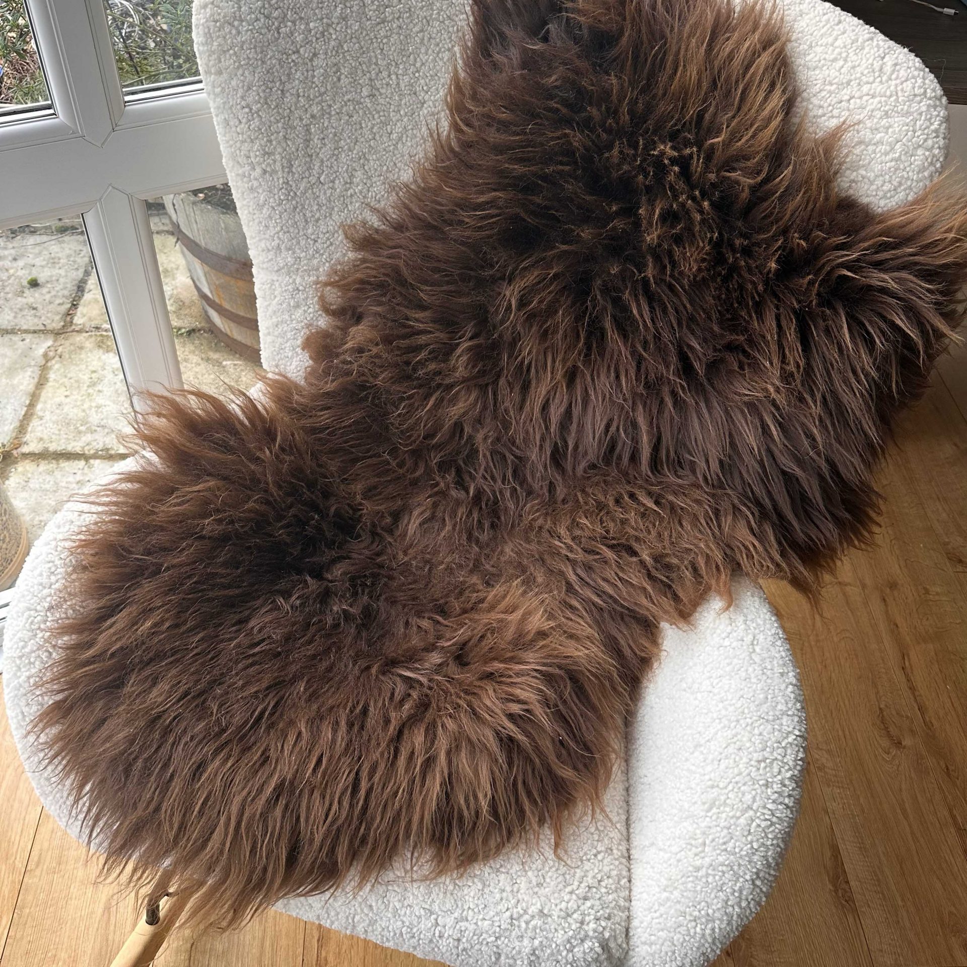 Oh what a stunner! This sheepskin is rich on brown tones and have the most beautiful shaggy, long and soft fleece.