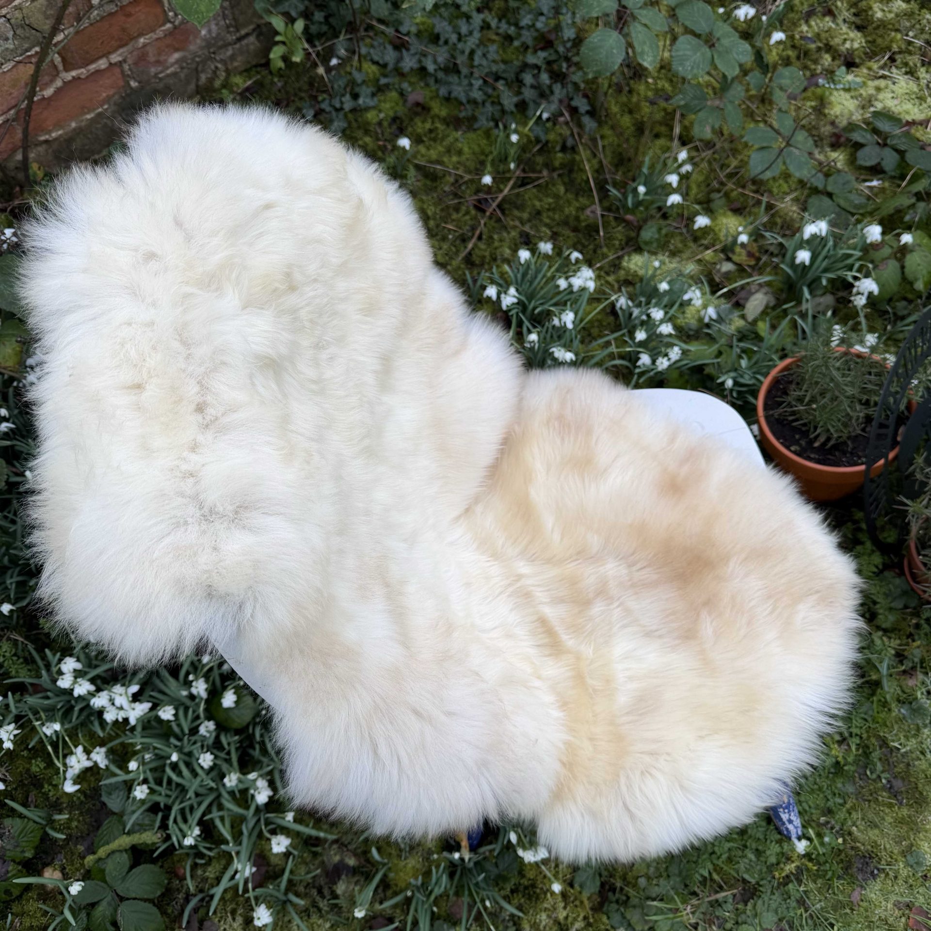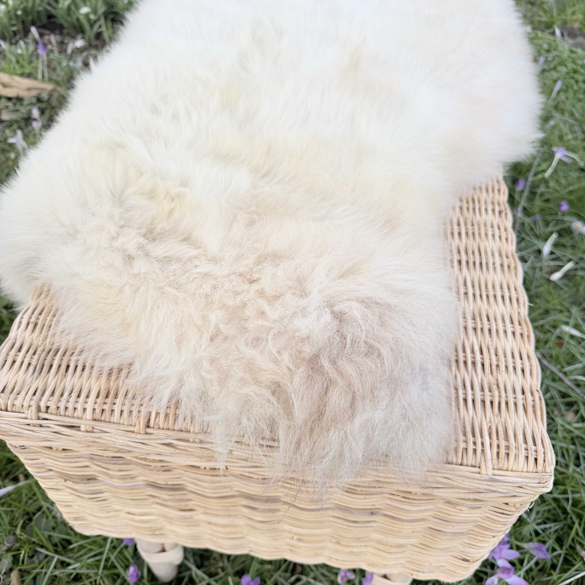 A subtle natural coloured British sheepskin, whilst it is primarily cream it has soft beige areas making it a vibe for neutral unique looks. It is soft and cosy.