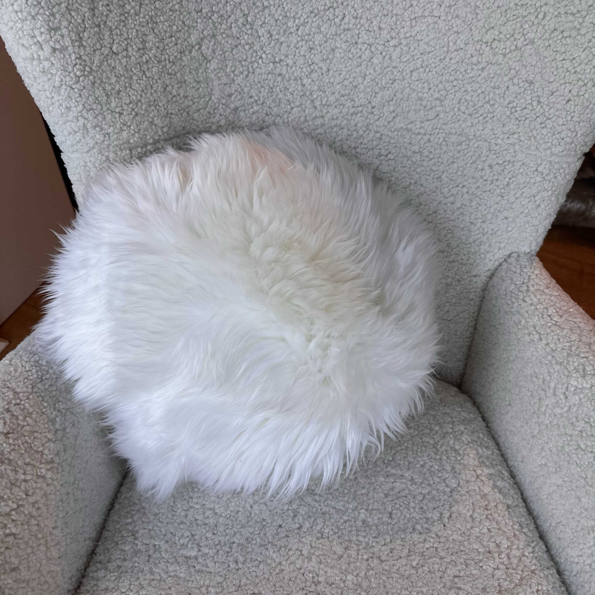 Our fabulous sheepskin cushion has two beautiful sides, offering two interior looks! One is a genuine sheepskin featuring fluffy long locks and the other a soft velvet suede like material.