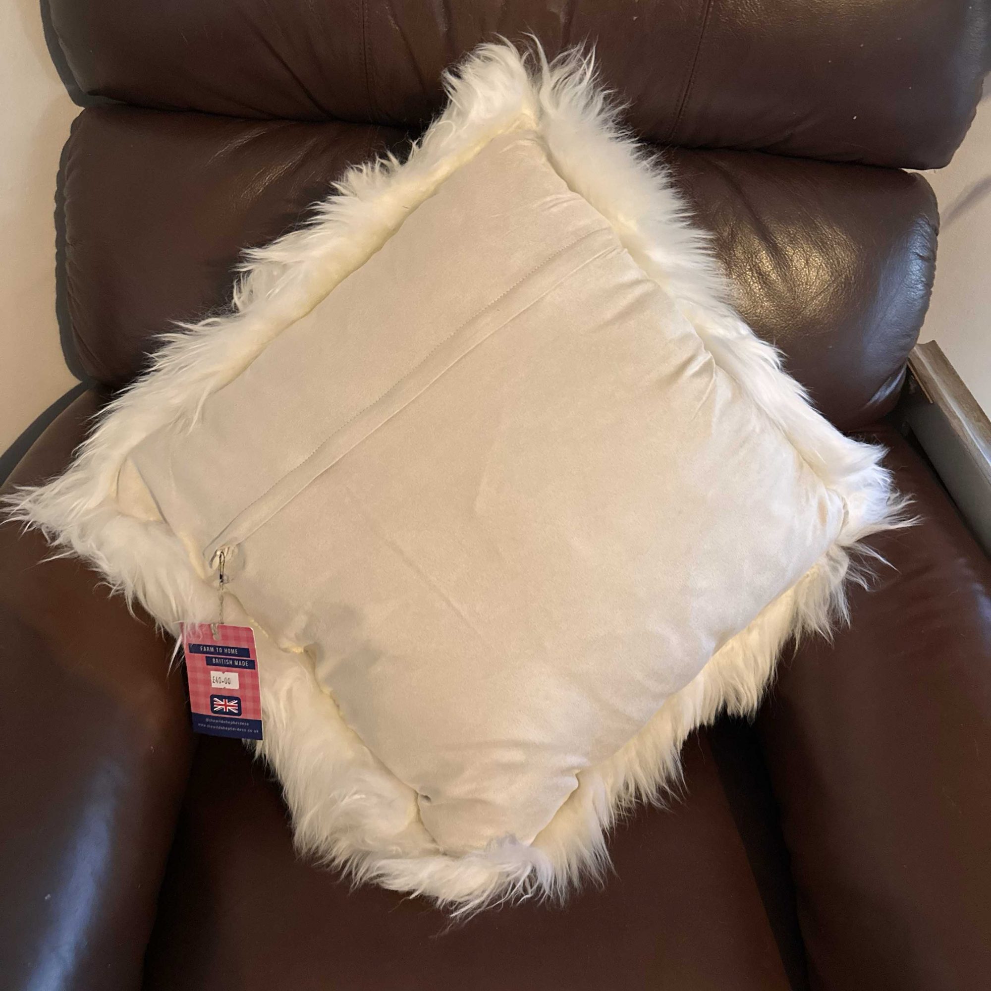 Our fabulous sheepskin cushion has two beautiful sides, offering two interior looks! One is a genuine sheepskin featuring fluffy long locks and the other a soft velvet suede like material.