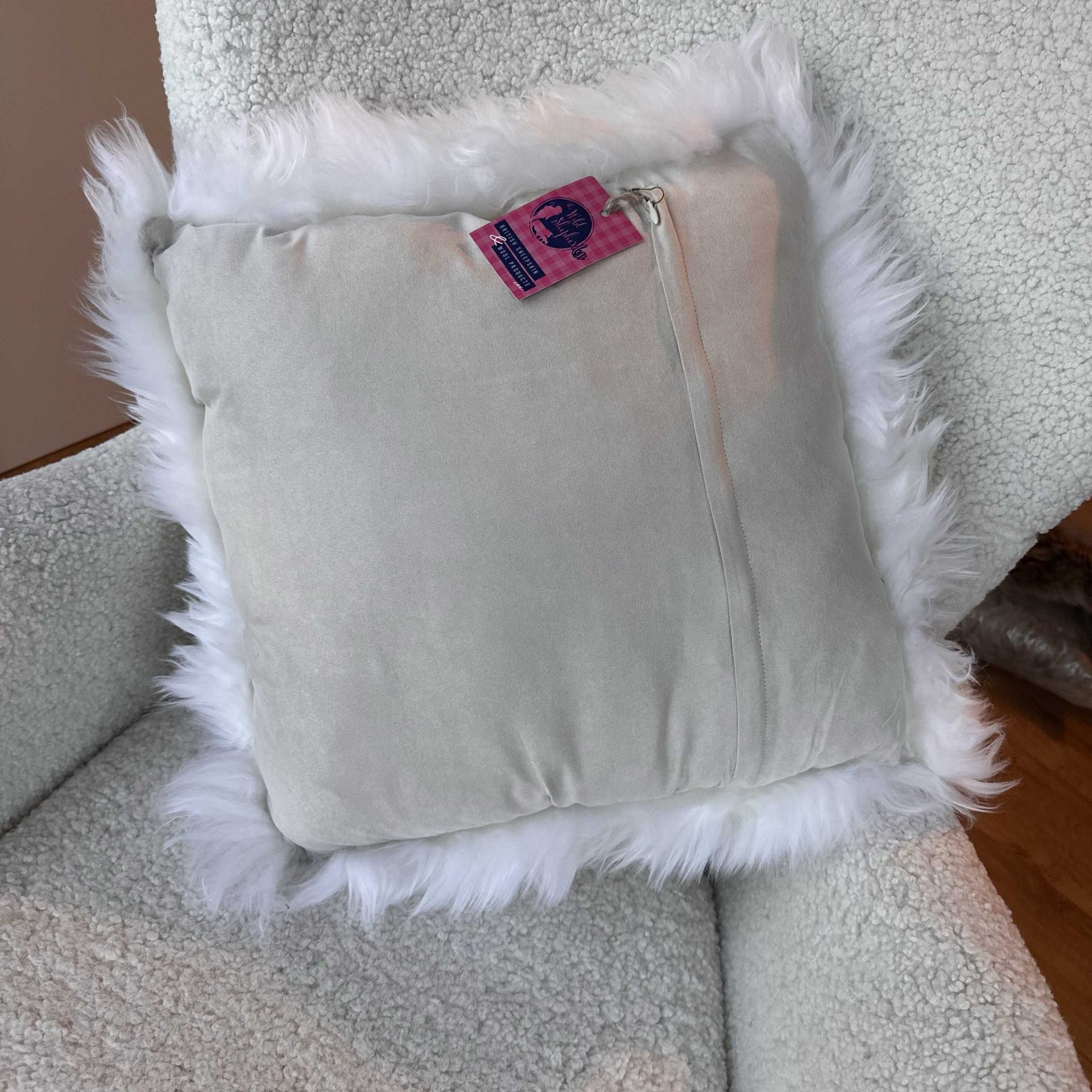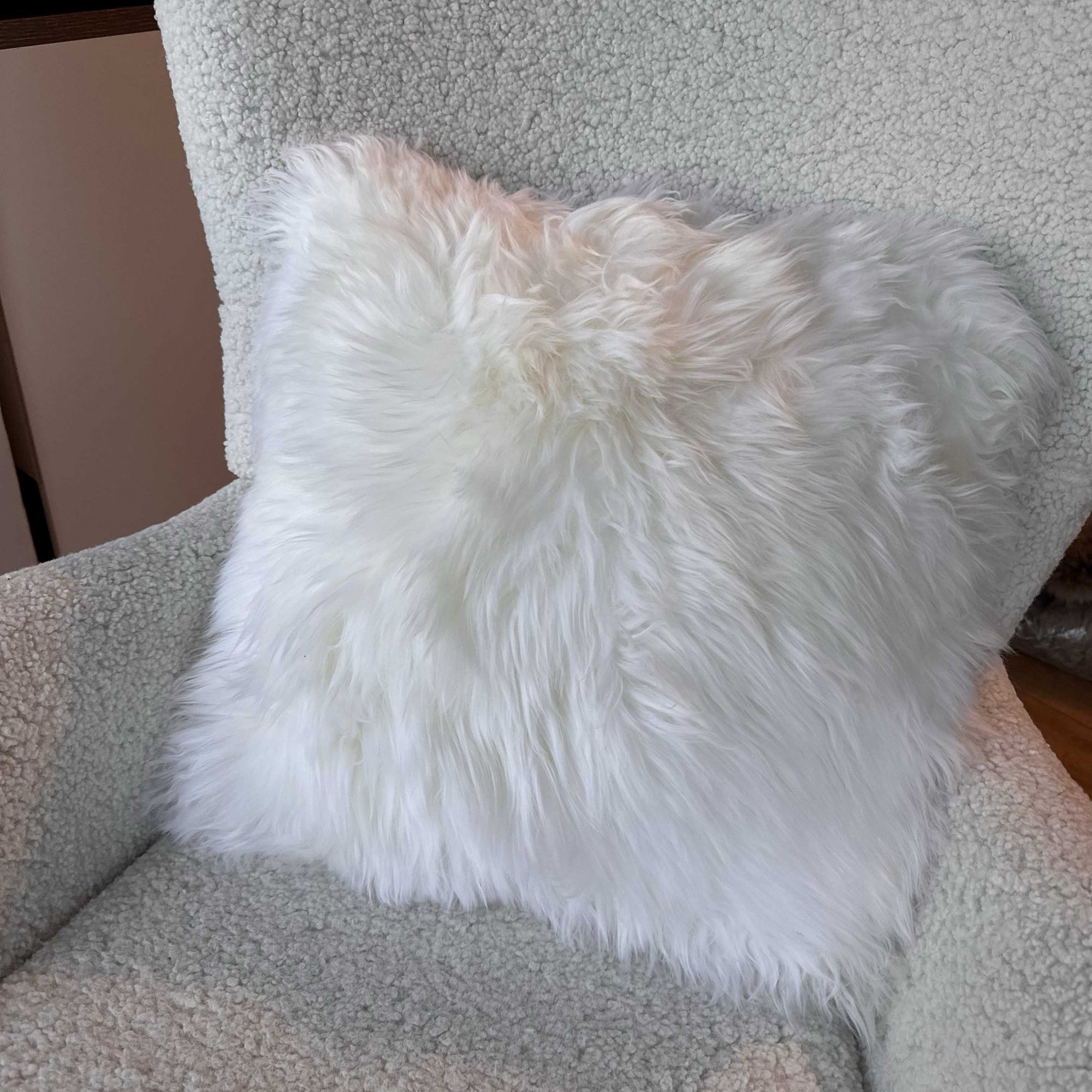 Sheepskin Cushion – White Velvet Suede Square