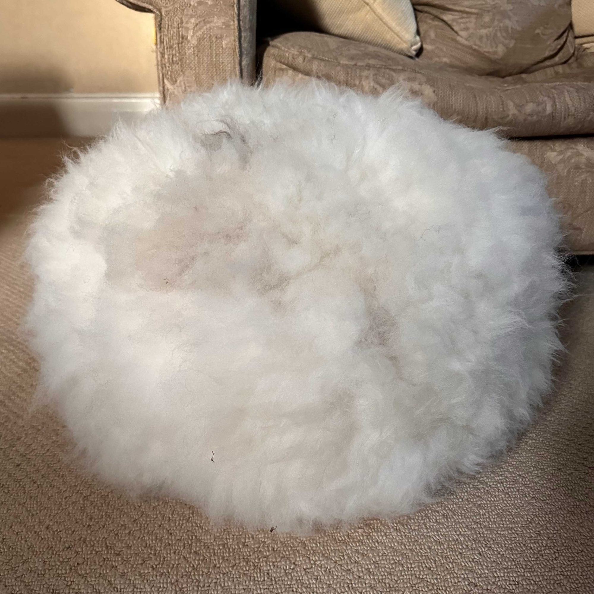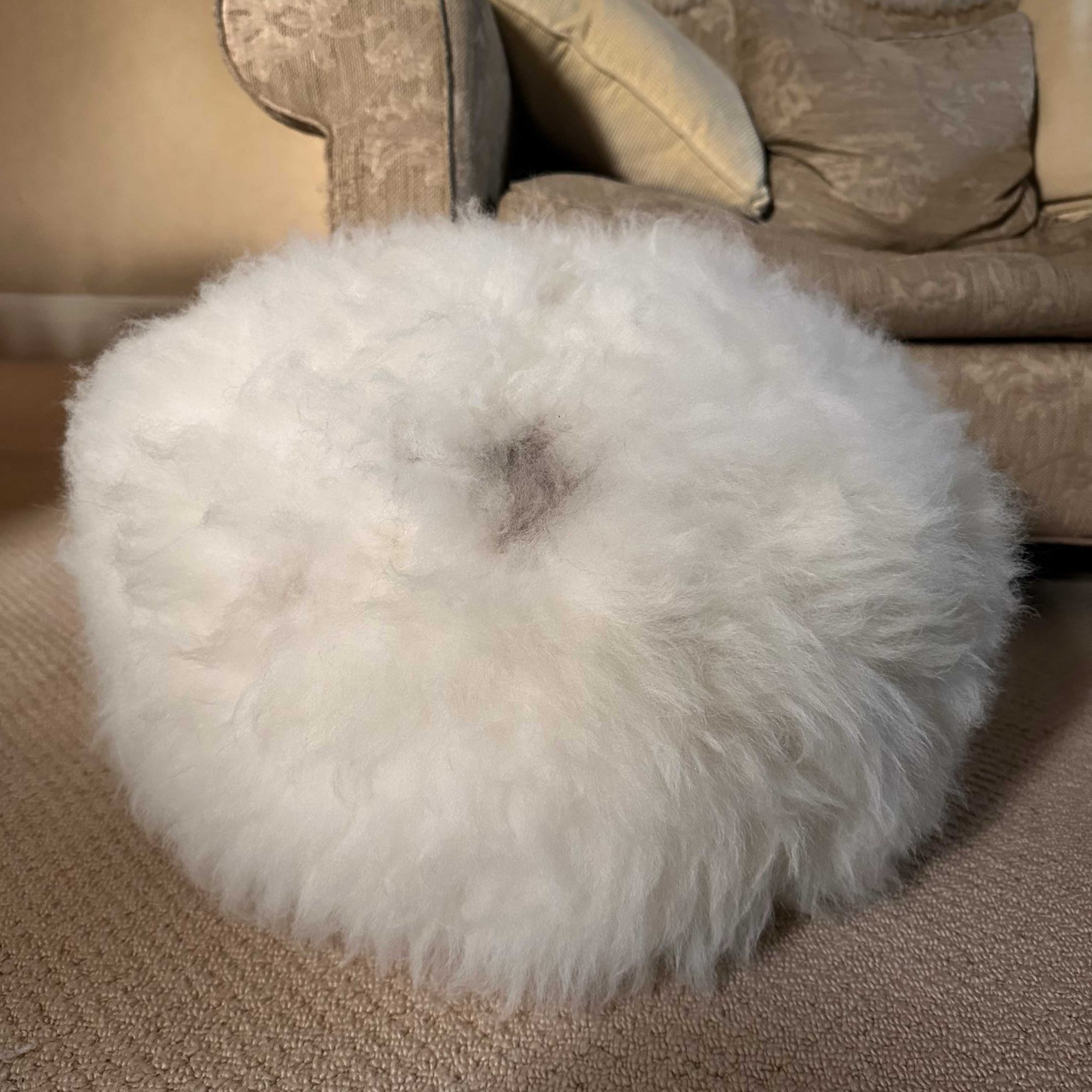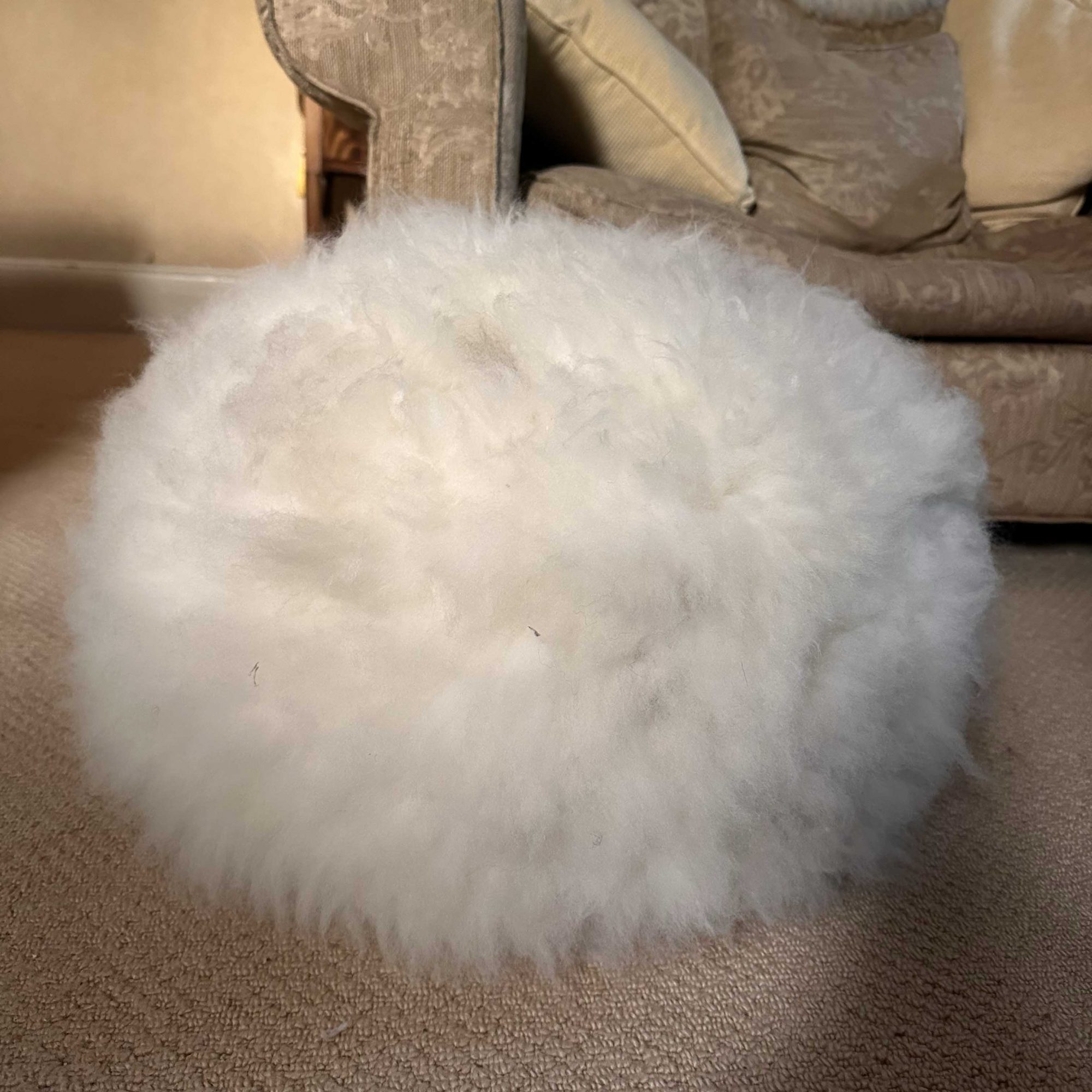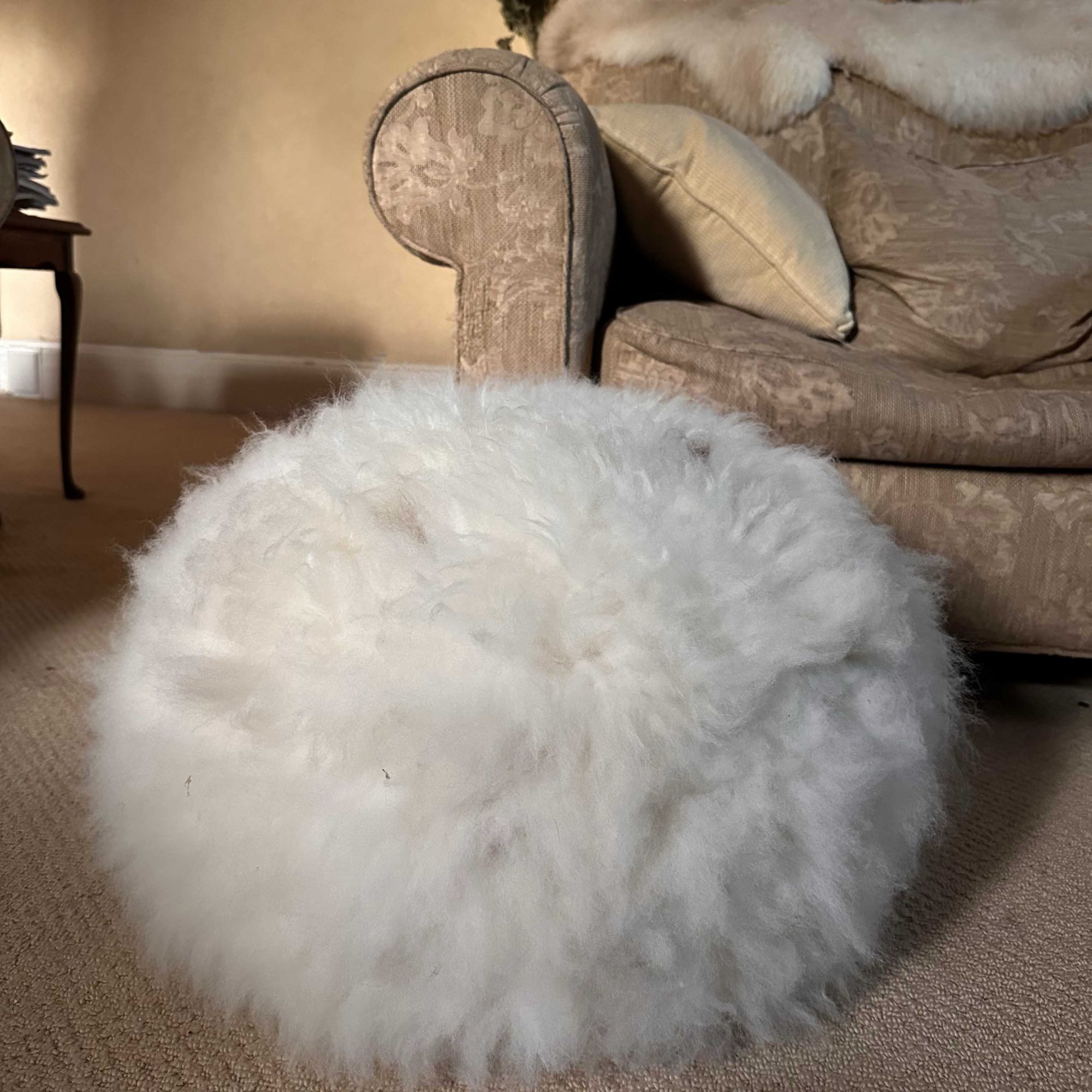 To minimise waste our luxury pouffe is filled with sheepskin off cuts.