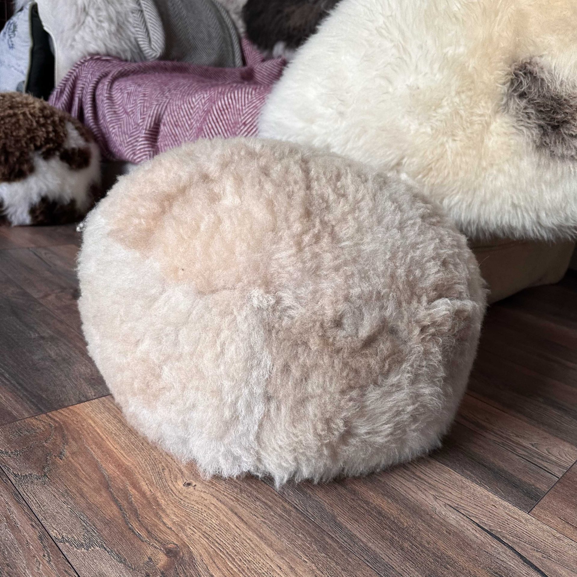 British Sheepskin Pouffe – Natural Coloured – 2